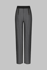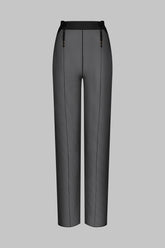 Die Hose ist vorne und hinten mit feinen Steppnähten verziert, die die Beine in aller Transparenz bis hin zur Taille betonen. Ein hoher, flacher Bund aus doppelseitigem Satin