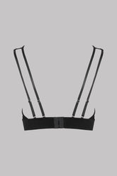 BH mit tiefem V-Ausschnitt, ohne Bügel. Das transparente, grafische Streifen-Design im Ajour-Stil akzentuiert die natürliche Form der Brust. Strukturierte Cups durch breite Träger auf der Vorderseite, durch zwei elastische Träger auf der Rückseite verstellbar. Breites, unifarbenes Unterbrustband, mit schwarzer Mikrofaser überzogen. Verstellbarer Hakenverschluss am Rücken.
