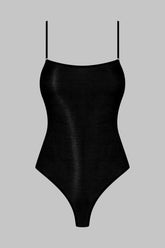 String-Body tief ausgeschnitten, mit einzigartigem Tragegefühl. Dehnbares, ultraweiches und leichtes Ripp-Modal, das sich sowohl in der Version Glanz als auch in der Version Transparenz dehnt. Eng anliegender, schlichter Schnitt mit Baumwollfutter und verstellbare Häkchenöffnung im Schritt. Schmale, nicht abnehmbare Träger mit verstellbaren silberfarbenen Details.