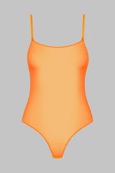 Der String-Body in Neonfarbe besteht aus einem weichen Tüll mit schillernder Transparenz.