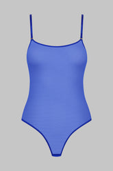 Der String-Body in Neonfarbe besteht aus einem weichen Tüll mit schillernder Transparenz.
