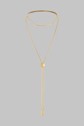 Ein strahlendes Körper-Schmuckstück, die Bolo Tie Kette À Ton Cou zeichnet eine Sinnlichkeit in Bewegung. Ihre 130 cm langen goldfarbenen Ketten gleiten über die nackte Haut, schmiegsam zwischen die Brüste oder entlang der Rückenlinie. Das verschiebbare Schmuckelement, graviert mit dem Maison Close Siegel, liegt sanft im Nacken oder auf dem Dekolleté für eine millimetergenaue Anpassung.