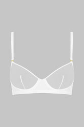 Der Balconnet-BH in der Farbe Weiß besteht aus einem weichen Tüll mit schillernder Transparenz. Seine Bügel sorgen für eine optimale Unterstützung der Brust. Praktischer Häkchenverschluss im Rücken.