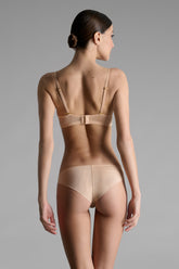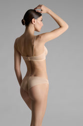 Das Höschen in der Farbe Nude besteht aus einem weichen Tüll mit schillernder Transparenz. Ein zeitloses Basic-Modell aus hinten gefüttertem Tüll, das den Po perfekt zur Geltung bringt.