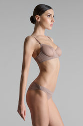 Das Höschen in der Farbe Nude besteht aus einem weichen Tüll mit schillernder Transparenz. Ein zeitloses Basic-Modell aus hinten gefüttertem Tüll, das den Po perfekt zur Geltung bringt.