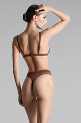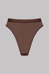 Der hohe Taillenbund und der hohe Beinausschnitt, der bis über die Hüften reicht, machen dieses Modell zu einem äußerst femininen Wäschestück.