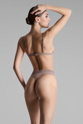 Der High Waist-String in der Nude besteht aus einem weichen Tüll mit schillernder Transparenz.