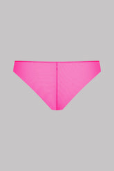 Das Höschen in Neonfarbe besteht aus einem weichen Tüll mit schillernder Transparenz.