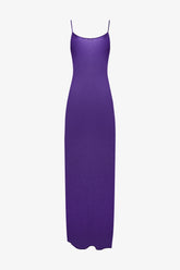 Das lange Fever-Rückenfreikleid ist aus fließendem, halbtransparentem Viskose-Crêpe in leuchtendem Violett gefertigt und verleiht eine leichte, elegante Silhouette. Der leicht taillierte Schnitt schmiegt sich sanft an die Körperformen an, während ein seitlicher Schlitz auf der linken Seite das Bein dezent zur Geltung bringt. Der offene Rücken wird von feinen Bindebändern gehalten, die mit den gravierten schwarzen „Lipstick“-Enden von Maison Close – einem raffinierten Signature-Detail – versehen sind. Dank ihres Schiebesystems lassen sich sowohl die Tiefe des Ausschnitts als auch die Länge der Robe individuell anpassen, für einen perfekten Fall.