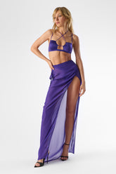 Der Fever-Wickelrock ist aus fließendem, halbtransparentem Viskose-Crêpe in leuchtendem Violett gefertigt – leicht und luftig, ideal für sonnige Tage oder stilvolle Layering-Looks. Sein gerader Schnitt und die großzügige Länge strecken die Silhouette, während der abgerundete Schlitz vorne links bei jeder Bewegung dezent das Bein enthüllt. Der Rock wird in der Taille mit zwei Bindebändern geschlossen, für eine natürliche und unkomplizierte Passform.