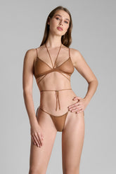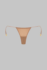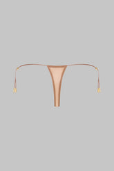 Mini-String aus feinem Jersey mit schimmernden Reflexen und subtiler Transparenz. Ein ikonischer, unverzichtbarer Schnitt. Zart gerafft vorne und hinten für eine elegante Passform. Die seitliche Schnürung ist individuell verstellbar dank eines einzigartigen Reglers und goldfarbener "Lipstick"-Accessoires mit Maison Close Gravur – für ein Styling ganz nach Wunsch!