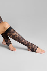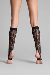 Die Gamaschen sind mit Lochspitze verziert, die größtenteils aus recyceltem Material gefertigt wird. Eng anliegender Schnitt und flaches Gummiband. Ausgeschnittene Öffnung auf der Rückseite des Beins. Offene Fußspitzen.