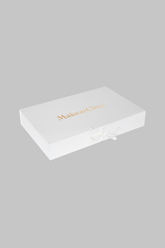 Überreichen Sie Ihre Geschenke mit Eleganz dank dieser stilvollen weißen Box. Veredelt mit einer zarten weißen Satin-Schleife bietet sie einen Verschluss, der sowohl schick als auch raffiniert ist. Ein goldenes Maison Close-Logo rundet das Design perfekt ab und verleiht Ihren Geschenken eine Note von Prestige.