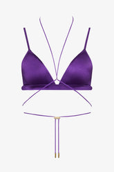 Dreieck-Bikini-Oberteil ohne Bügel, das satinierte Weichheit mit stilvoller Eleganz vereint. Die nahtlos vorgeformten Dreieck-Cups schmiegen sich perfekt an die Brustform an. Das vollständig abnehmbare und verstellbare Nackenband mit einem einzigartigen Schieber und goldfarbenen „Lipstick“-Accessoires, signiert von Maison Close, betont das Dekolleté und ermöglicht eine individuelle Anpassung ganz nach Wunsch. Die feinen, flachen und verstellbaren Träger sorgen für einen perfekten Sitz. Ein elastisches Unterbrustband umschmeichelt und formt die Brust harmonisch. Verschluss mit Schmuckelement am Rücken.