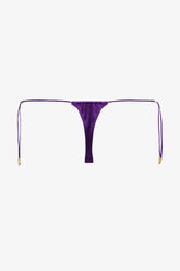 Mini-String-Bikini-Höschen, das satinierte Weichheit mit einer ikonischen, unverzichtbaren Passform vereint. Fein plissiert vorne und hinten, bietet dieses Modell eine elegante Silhouette. Das seitliche Schnürspiel lässt sich individuell anpassen dank eines einzigartigen Schiebers und der goldfarbenen „Lipstick“-Accessoires, signiert von Maison Close.