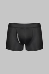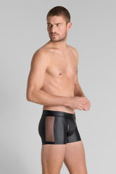 Boxer in doppelter Optik: mattes Leder und transparenter Tüll an den Seiten. Eng anliegend, am Oberschenkel etwas kürzer als herkömmliche Boxershorts, um optimalen Tragekomfort zu gewährleisten. Der flache Bund und der überlappende Schnitt am Gesäß und im Schritt sorgen für einen guten Sitz. Das Innenfutter auf der Vorderseite sorgt für hohen Tragekomfort.