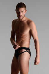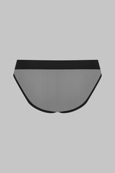 Slip aus transparentem Tüll mit Hautausschnitt vorne. Ein mit halbmatter Mikrofaser bezogener elastischer Bund sorgt für eine optimale Passform.