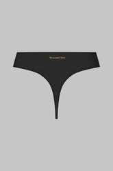 Taillen-String gefertigt aus einem feinen Jersey mit glänzenden und dezent transparenten Reflexen. Er ist mit einem ultraflachen Gummiband eingefasst, das unter der Kleidung unsichtbar ist. Das goldene Maison Close Logo ist auf der Rückseite angebracht. Der sehr hoch ausgeschnittene Schnitt an den Hüften verlängert optisch die Silhouette.