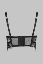 Balconnet-BH mit Bügeln und steifer gotischer Spitze und Plumetis-Tüll. Mit einstellbaren elastischen breiten Trägern, die einen perfekten Halt garantieren. Rückseitig mit einem Häkchenverschluss verstellbar Ein spirituelles und emblematisches Dessous aus der Kollektion Inspiration Divine.