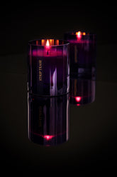 Lackiertes, facettiertes Siebdruckglas, das der Flamme bei ihrem sanften Abbrennen einen einzigartigen Farbton verleiht.
