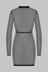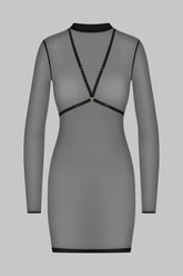 Das kurze Kleid mit langen Ärmeln in der Farbe Schwarz besteht aus einem weichen Tüll mit schillernder Transparenz.