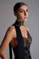 Zum ersten Mal kombiniert Maison Close zwei sinnliche und zeitlose Materialien miteinander und sorgt so für neue Spannung: feine Spitze wird mit fließender Seide ergänzt.