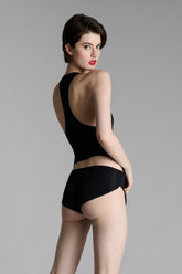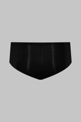 Mini Shorts mit niedriger Taille und einzigartigem Tragegefühl. Dehnbares, ultraweiches und leichtes Ripp-Modal, das sich sowohl in der Version Glanz als auch in der Version Transparenz dehnt. Bedeckter Gummibund in der Taille. 80er-Jahre-Schnitt, abgerundete Schlitze an den Seiten, um die Silhouette zu betonen.
