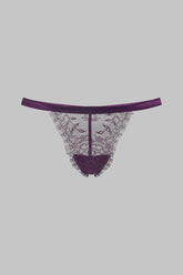 Eine einzigartige Kombination aus allerfeinster Spitze und Satin in Tiefviolett. Diese poetische, zart transparente Kollektion zeichnet verschlungene Muster auf die Haut und verspricht ein gewagtes Spiel.