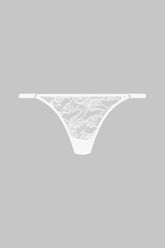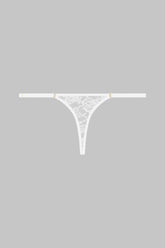 Der Mini-String ist mit Lochspitze verziert, die größtenteils aus recyceltem Material gefertigt wird.