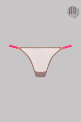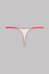 Der Mini-String in der Farbe Nude besteht aus einem weichen Tüll mit schillernder Transparenz.