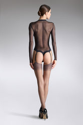 Nylonstrümpfe sind wahre Symbole der Weiblichkeit und Eleganz. Der zarte Glanz der mit nur 15 Denier unglaublich feinen und transparenten Strümpfe formt und verschönert das Bein. Die Nylonstrümpfe werden in Frankreich in einer der letzten Werkstätten weltweit hergestellt. Ihr Entwurf und ihre Seltenheit machen sie zu einem ultimativen Luxusaccessoire. In Verbindung mit einem Strapsgürtel von Maison Close verlängern sie die Silhouette ohne störende Linien. Für einen perfekten Herz-Effekt bis unter den Po hochziehen.