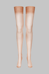 Nylonstrümpfe sind wahre Symbole der Weiblichkeit und Eleganz. Der zarte Glanz der mit nur 15 Denier unglaublich feinen und transparenten Strümpfe formt und verschönert das Bein. Die Nylonstrümpfe werden in Frankreich in einer der letzten Werkstätten weltweit hergestellt. Ihr Entwurf und ihre Seltenheit machen sie zu einem ultimativen Luxusaccessoire. In Verbindung mit einem Strapsgürtel von Maison Close verlängern sie die Silhouette ohne störende Linien. Für einen perfekten Herz-Effekt bis unter den Po hochziehen.