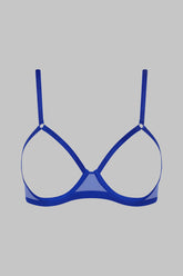 Offener BH und Bügeln aus Tüll in Neonfarbe ist ein extravagantes Modell der Kollektion.