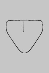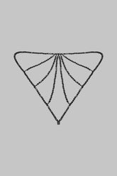Offenes Schmuckhöschen aus tiefschwarzen, facettierten Glasperlen. Das Höschen „À ton cou“ reflektiert das Licht im Rhythmus der Bewegungen. Weicher, unsichtbarer Gummizug im Schritt für mehr Komfort. Mithilfe der Einstellketten verstellbar und anpassbar. Als Schmuck mit dem offenen Dreieck oder über einem Catsuit von Maison Close zu tragen.