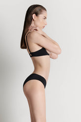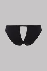 Offenes Höschen aus blickdichter Mikrofaser mit elastischen Zackenkanten. Strukturierter Schnitt mit zwei gekreuzten Stoffleisten vorne und hinten.