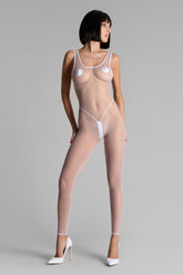 Der öffnungsfähige Catsuit mit Trägern Pure Tentation verkörpert pure Sinnlichkeit. Aus einem ultra-transparenten Material gefertigt, verwischt er die Grenzen zwischen Kleidung und Haut und zeichnet jede Körperlinie neu.