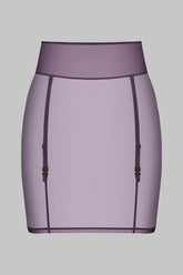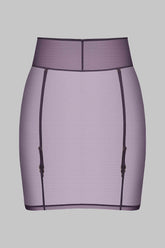 Kurzer Rock mit Strumpfhaltern aus absolut transparentem Tüll. Gefütterter Bund für einen perfekten Sitz an der Taille. Quer verlaufende Nähte, um die abnehmbaren Strumpfhalter zu begleiten. Halbrock zum Tragen über anderen Modellen der Kollektion oder als Unterrock.