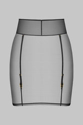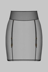 Der L’AMOUREUSE-Strapsgürtel aus absolut transparentem Tüll ist vorne doppellagig und modelliert gearbeitet, um mit Transparenz und Opazität zu spielen. Sechs verstellbare, nicht abnehmbare Strapse strukturieren die Oberschenkel. Sanfter, zarter Hakenverschluss hinten.