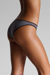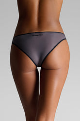 Slip aus ultrafeiner Mikrofaser mit Second‑Skin‑Effekt. Das glatte, leichte Material wirkt fast unsichtbar und umschmeichelt den Körper mit diskreter Leichtigkeit. Die Kanten sind mit kontrastierenden, ultraflachen Gummibändern betont, die die Silhouette zeichnen, ohne einzuengen. Auf der Rückseite verleiht das reliefierte Maison Close‑Logo dem Stück eine grafische Note.