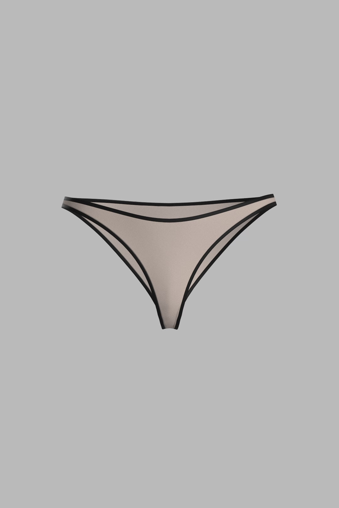 Slip aus ultrafeiner Mikrofaser mit Second‑Skin‑Effekt. Das glatte, leichte Material wirkt fast unsichtbar und umschmeichelt den Körper mit diskreter Leichtigkeit. Die Kanten sind mit kontrastierenden, ultraflachen Gummibändern betont, die die Silhouette zeichnen, ohne einzuengen. Auf der Rückseite verleiht das reliefierte Maison Close‑Logo dem Stück eine grafische Note.
