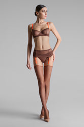 Gestalten sie Ihr Mix & Match, indem Sie diese Stockings mit neonfarbener Naht mit den austauschbaren Stücken der Linien Corps à Corps, Corps à Corps Néon und Signature kombinieren.