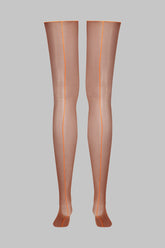Die Stockings werden hinten von einer neonfarbenen Naht geschmückt, eine knallige Signatur, die Ihrem Look den sorglosen Schwung der Eighties verleiht.