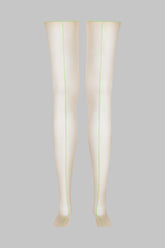 Die Stockings werden hinten von einer neonfarbenen Naht geschmückt, eine knallige Signatur, die Ihrem Look den sorglosen Schwung der Eighties verleiht.