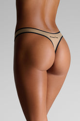 Ausschnitt‑String aus ultrafeiner Mikrofaser mit Second‑Skin‑Effekt. Der Schnitt verläuft höher an den Seiten, um die Hüfte freizulegen und das Bein optisch zu verlängern. Die Kanten sind mit einem ultraflachen, kontrastierenden Gummiband versehen. Auf der Rückseite betont die Maison Close‑Signatur die Linie mit eleganter Raffinesse.