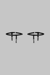 Zwei Signature-Strumpfhalter mit Maison-Close-Logo. Verstellbare Gummibänder mit silberfarbenen Applikationen. Abnehmbare Mini-Strumpfhalter, die sich auf beiden Seiten des Beins anbringen lassen, sobald das Strumpfband angepasst wurde.