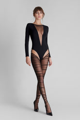 Die Strümpfe lassen sich mit einem Modell aus der Nuit Fauve-Kollektion oder auch einem Prêt-à-porter-Look ergänzen und setzen einen subtil betörenden, verheißungsvollen Akzent.