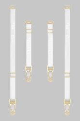 Die abnehmbaren, elastischen Strumpfhalter elektrisieren wie eine zweite Haut in einer leuchtenden Neonfarbe, dem knalligen Markenzeichen, und befestigen sich mühelos wie ein sorgloser Energieschub direkt aus den Achtzigern.
