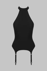 Dieses Top aus der Kollektion Nuit Infinie vereint Funktionalität und Sinnlichkeit mit seinen breiten, verstellbaren und abnehmbaren Strapshaltern. Der amerikanische Ausschnitt in Kombination mit dem offenen Rücken verleiht eine gewagte Note, während die Rückenschnürung eine individuelle Anpassung ermöglicht. Flexible Stäbchen sorgen für Struktur und Komfort, was dieses Top zu einem einzigartigen Design macht.