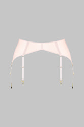 Strumpfhaltergürtel aus absolut transparentem Tüll. Vorne gefütterter Lochtüll für einen Kontrast zwischen Transparenz und Opazität 6 verstellbare, nicht abnehmbare Strumpfhalter strukturieren den oberen Teil der Beine. Glatter, dezenter Häkchenverschluss im Rücken.