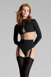 Nuit Infinie Taillenhoher Tanga mit Strumpfhaltern